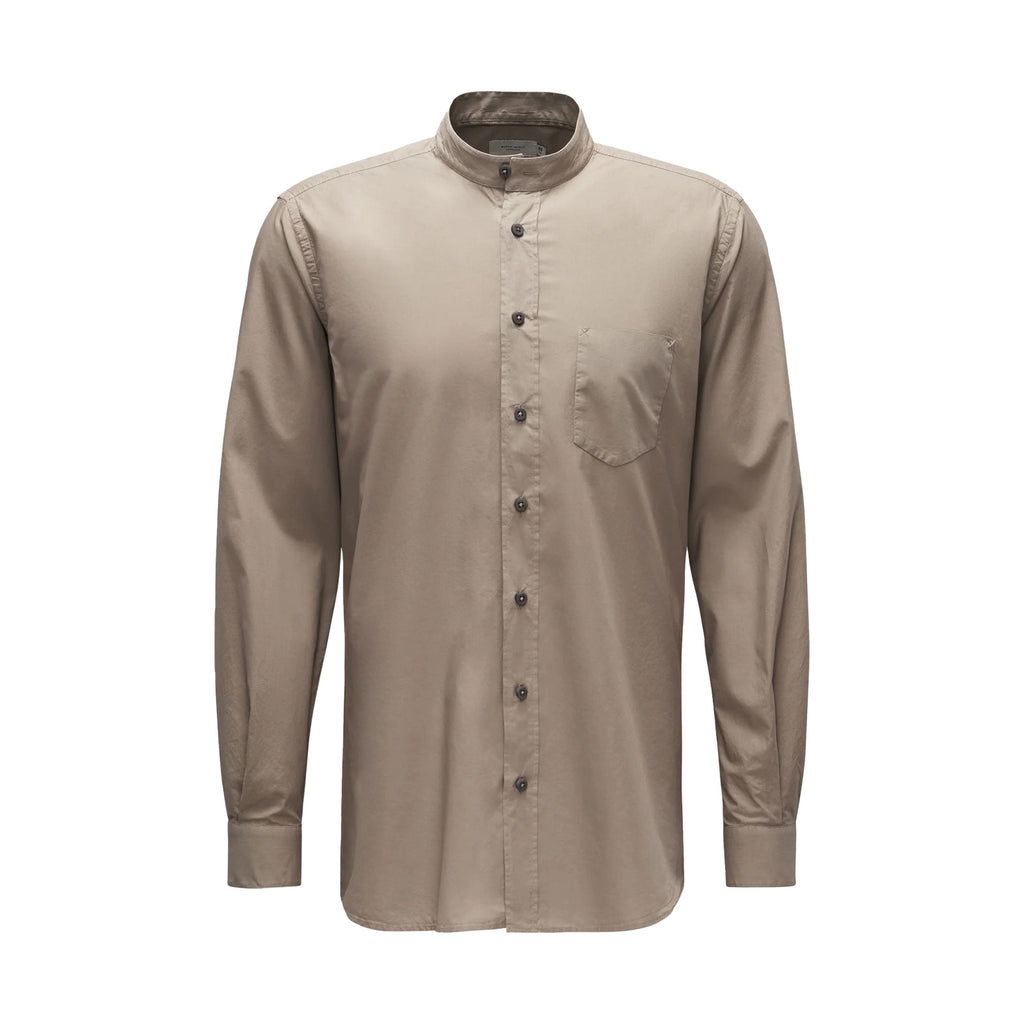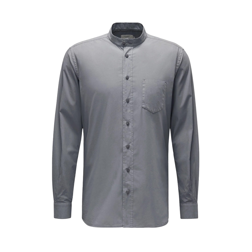 Unser gerade geschnittenes Herrenhemd mit Stehkragen aus der COOL TAILORING Kollektion ist Deine erste Wahl für absolut jeden Anlass. Durch das spezielle Garment Dye Verfahren, bei dem das Hemd erst nach Fertigstellung besonders ressourcenschonend im Ganzen gefärbt wird, erhält es einen dezenten Vintage-Effekt. Das Hemd ist extra lang geschnitten, sodass es auf keinen Fall aus der Hose rutscht. Durch die eleganten Rundungen am Saum kannst Du es aber auch lässig nach außen tragen. Wie bei all unseren Weber+Weber Produkten legen wir auch bei unserem sartorialen Baumwollhemd höchsten Wert auf Qualität und Einzigartigkeit. Die französischen Nähte sorgen für den schönen Saumabschluss, die Petina- Naht an den Schultern für das gewisse Extra. Jeder zweite Knopf wurde mit Kontrast-Nähseide genäht und die Kragenpaspel besteht aus traditionellen österreichischen Schilfleinen.